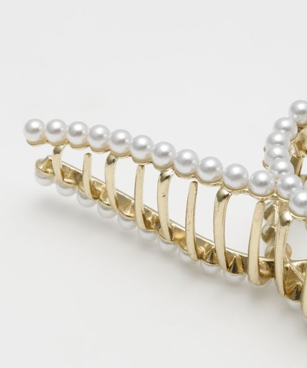 イミテーションパールがあしらわれた華やかな印象のバンスクリップ。大きめのデザインで、髪をしっかりとまとめてくれます。