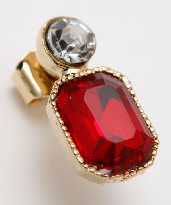 ヨーロッパの蚤の市で出会ったような、アンティーク調のスタッドピアス。色違いのビジューがきらりと輝きます。小ぶりなデザインで、耳元をさりげなく華やかに演出してくれます。