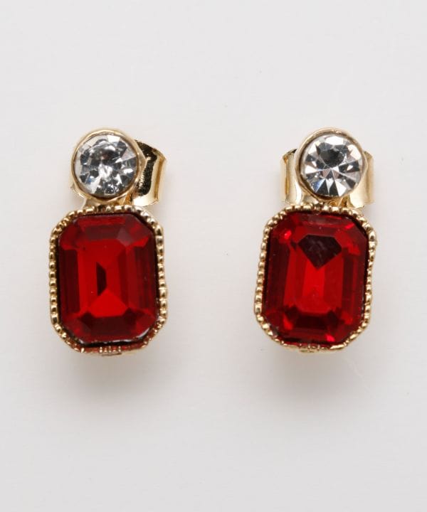 ヨーロッパの蚤の市で出会ったような、アンティーク調のスタッドピアス。色違いのビジューがきらりと輝きます。小ぶりなデザインで、耳元をさりげなく華やかに演出してくれます。