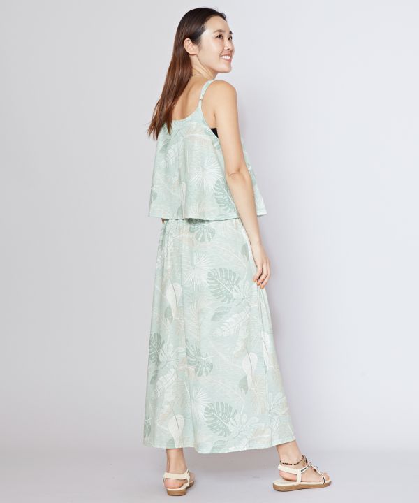 ストレッチ性のあるさらりとしたカットソー素材のキャミソール型ワンピース。セットアップのようなデザインで、ウエスト周りが気になりにくい。しわになりにくい素材。