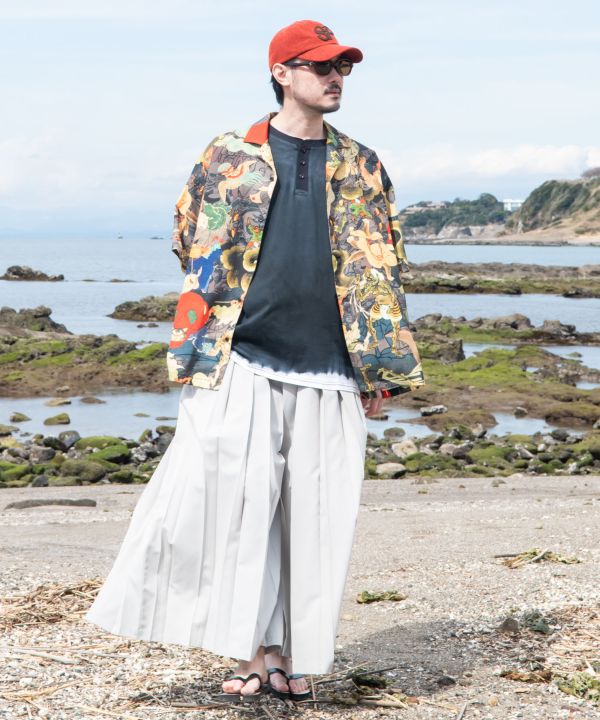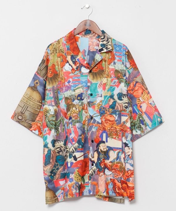 日本の浮世絵を大胆にコラージュしたカヤならではのオリジナル柄のアロハシャツ。生き物や妖怪、日本の神仏などを組み合わせた迫力あるデザインが目を引きます。ゆったりとしたシルエットでさらりと着られ、その日の気分で装いの印象を変えられるのも魅力。新柄の地獄柄も加わり、和の世界観を存分に楽しめる一枚です。