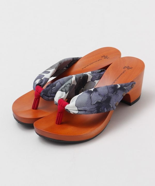 「mizutori」昭和12年創業から静岡市の地場産業であるはきもの作りに携わってきた水鳥工業。職人技を凝縮させた「はき心地の良い下駄」にこだわり、職人が一足一足丁寧に仕上げる日本の技。「こだわり」1.靴と同じように左右の足型にフィットした形 2.足の甲を包み込むように作った鼻緒 3.職人が一点一点丁寧に彫りあげた台。鼻緒はカヤオリジナルの柄です。