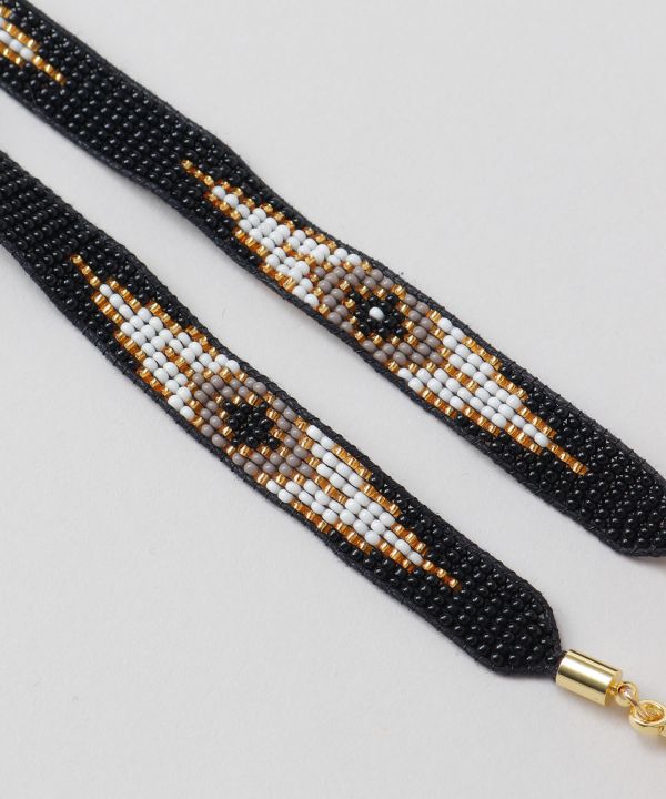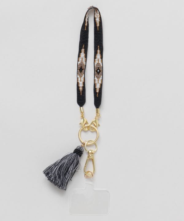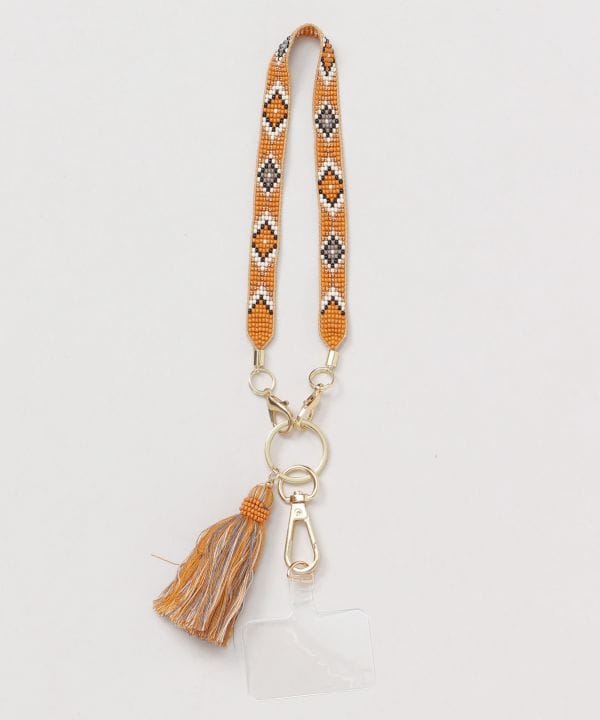 ネイティブアメリカンのオルテガ柄をビーズで編みこんだスマホストラップ。クリアストラップシート付き。スマホだけでなくバッグやポーチのチャームとしてもおすすめ。