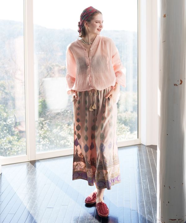 インド綿のふわっとした柔らかい肌触りのトップス。ゆったりとしたシルエットで、トップスとしても羽織としても使える。インナーを変えればオールシーズン着回し出来ます。