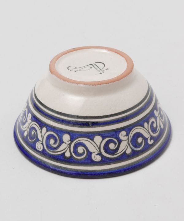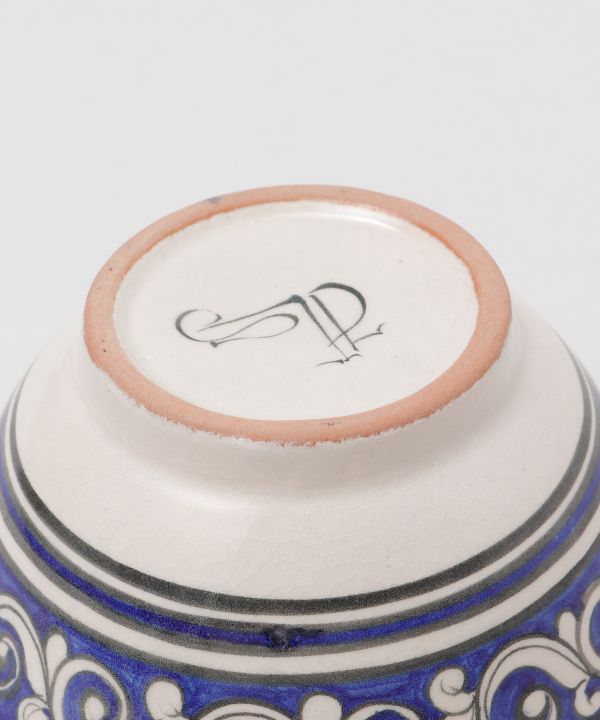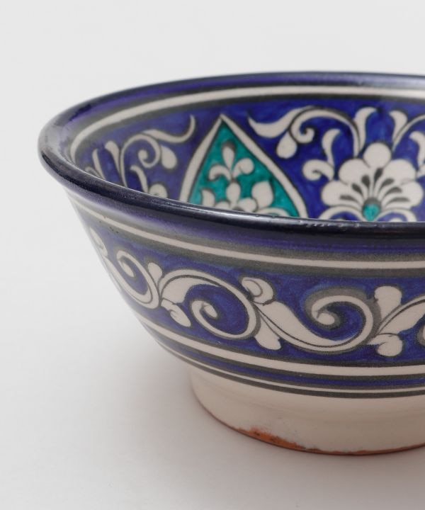ウズベキスタンから直輸入したリシタン食器のどんぶり皿。リシタン食器は「リシタンブルー」と呼ばれ、イスラム文化で平和を意味するとされています。ザクロや唐辛子など、ウズベキスタンで縁起物とされているモチーフが描かれているのが特徴です。唐辛子は魔除け、ザクロは豊穣子孫繁栄、八角形は吉祥や平和を願う意味が込められたモチーフとなっています。
