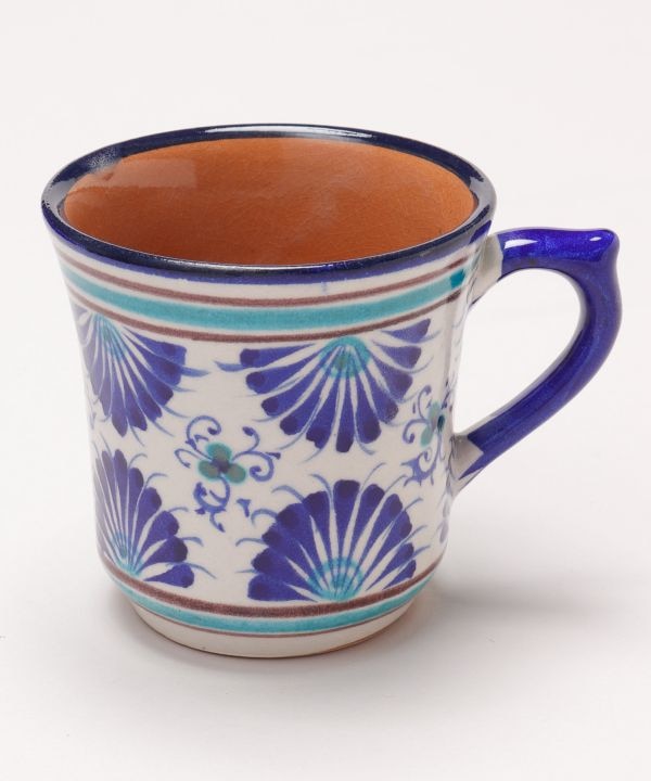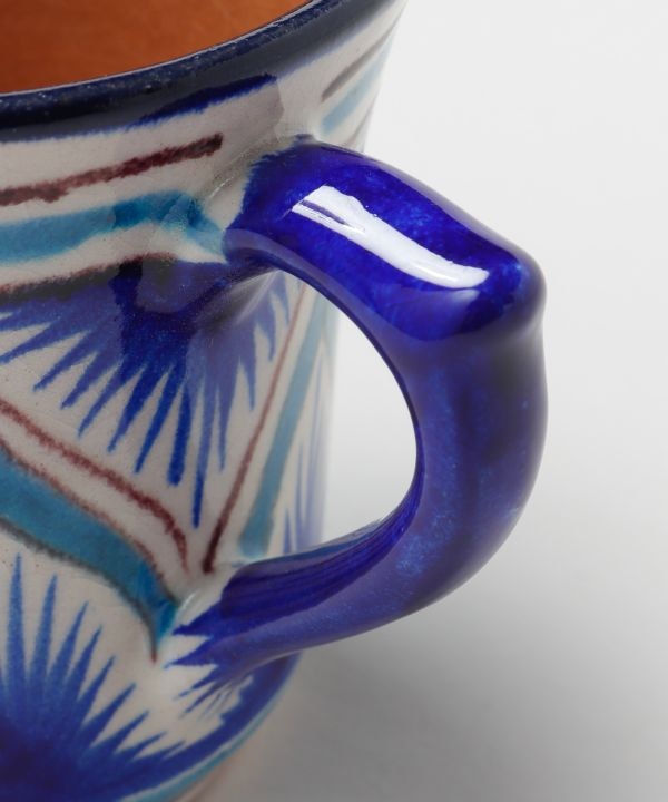 ウズベキスタンから直輸入したリシタン食器のカップ。リシタン食器は「リシタンブルー」と呼ばれ、イスラム文化で平和を意味するとされています。ザクロや唐辛子など、ウズベキスタンで縁起物とされているモチーフが描かれているのが特徴です。唐辛子は魔除け、ザクロは豊穣子孫繁栄、八角形は吉祥や平和を願う意味が込められたモチーフとなっています。