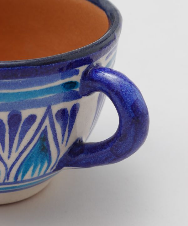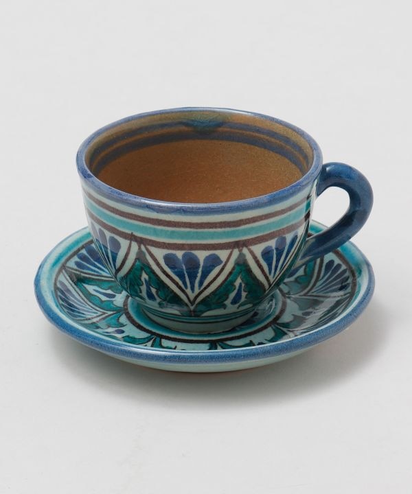 ウズベキスタンから直輸入したリシタン食器のカップセット。リシタン食器は「リシタンブルー」と呼ばれ、イスラム文化で平和を意味するとされています。ザクロや唐辛子など、ウズベキスタンで縁起物とされているモチーフが描かれているのが特徴です。唐辛子は魔除け、ザクロは豊穣子孫繁栄、八角形は吉祥や平和を願う意味が込められたモチーフとなっています。