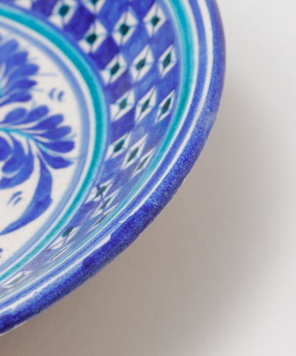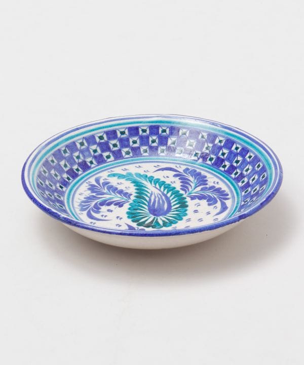 ウズベキスタンから直輸入したリシタン食器の丸鉢。リシタン食器は「リシタンブルー」と呼ばれ、イスラム文化で平和を意味するとされています。ザクロや唐辛子など、ウズベキスタンで縁起物とされているモチーフが描かれているのが特徴です。唐辛子は魔除け、ザクロは豊穣子孫繁栄、八角形は吉祥や平和を願う意味が込められたモチーフとなっています。