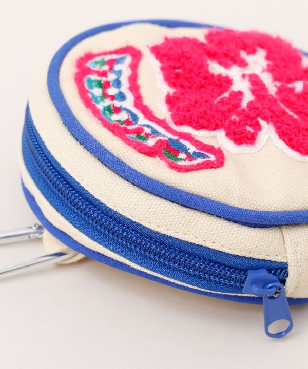 ハワイならではのモチーフをワッペン風のサガラ刺しゅうにしたラウンドポーチ。カラビナ付きでバッグのアクセントにも付けられます。お気に入りのバッグやベルトループにつけてお楽しみいただけます。