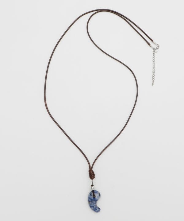 大粒の勾玉石を使用したメンズネックレス。勾玉は動物の牙や胎児の形に似ていることから、再生を象徴し持ち主に生命力をもたらすといわれています。男女共に使える祈りを込めて身に付けたいアイテム。