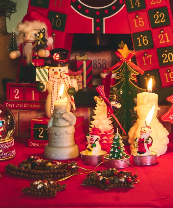 煙突に入ってプレゼントを届けようとしているサンタクロースの姿がキュートなキャンドル。リラックス効果の高いキャンドルは、プレゼントにも喜ばれます。
