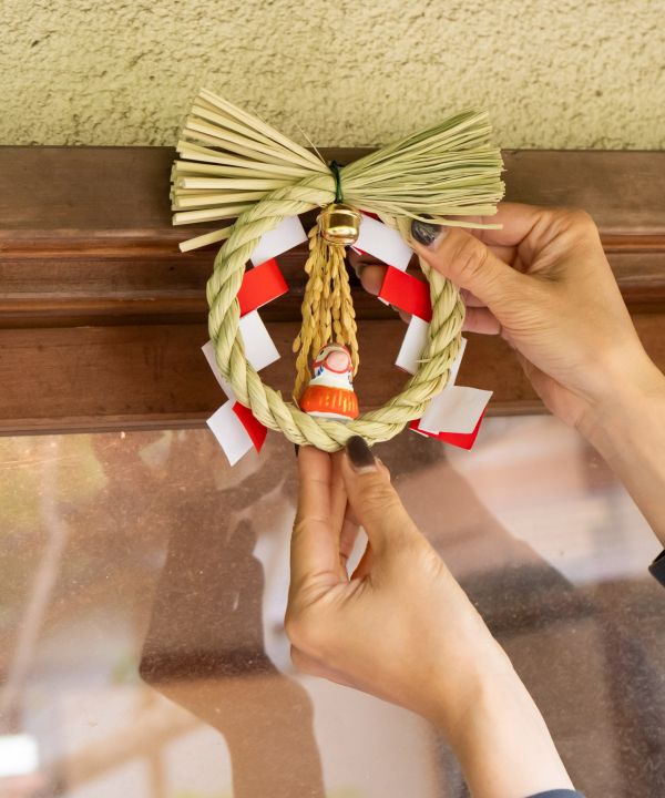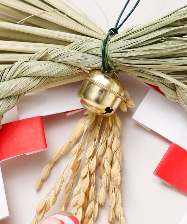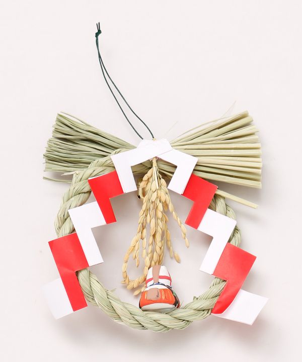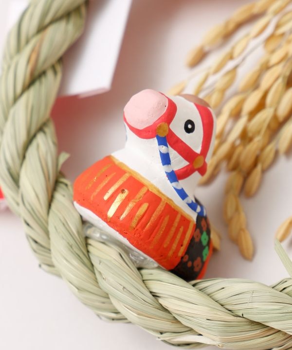 2026年午の飾りがちょこんと乗った注連縄飾り。その年の絵と物を飾ると1年安泰に過ごせると云われています。小さい童サイズ