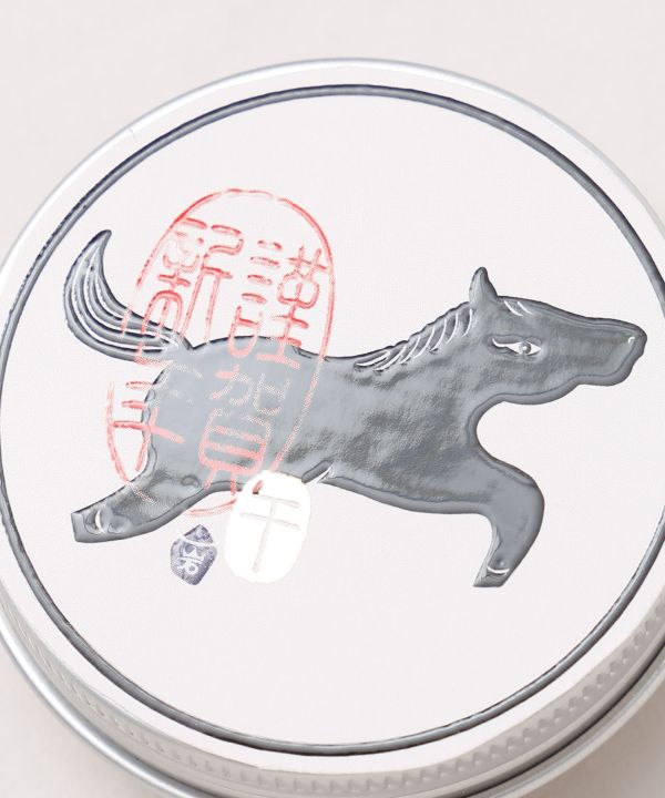 2026年の午をデザインしたおみくじ入りの飴缶。飴を食べた後は小物入れとしても使えます。運試しにも小物入れとしてもオススメです。