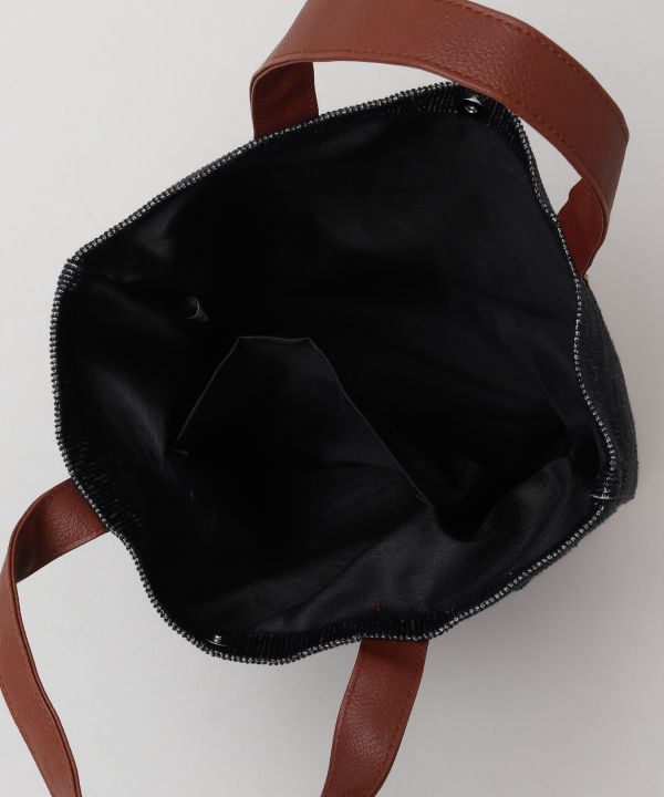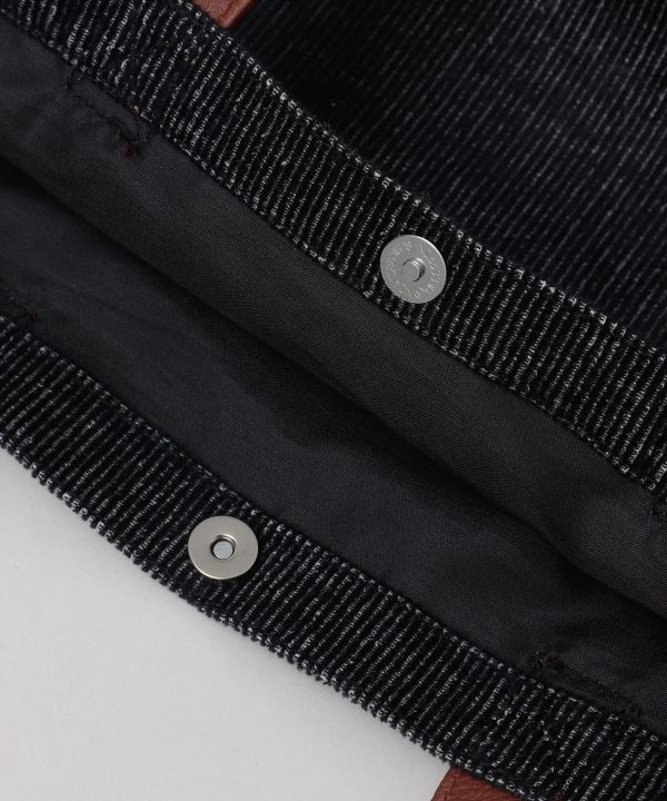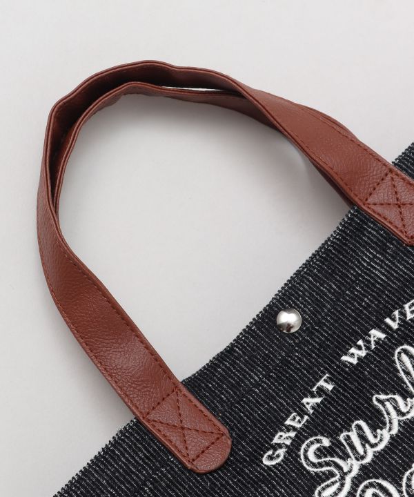 加工感のあるコーデュロイが特徴のミニトート。フェイクレザーの持ち手と刺しゅうがアクセントに。メンズにもおすすめ。