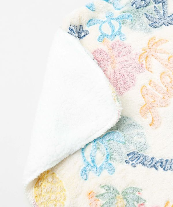 ポップなカラーリングでハワイのモチーフがぎゅっと詰まったブランケット。Sサイズはひざ掛けとして、赤ちゃんの肌掛けとしてちょうど良いサイズ。パッカブル仕様になっています。凹凸のある生地感で手触りの良いシリーズは、身も心も温まるプレゼントとしても喜ばれます。