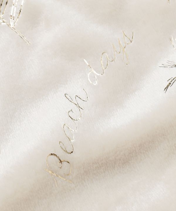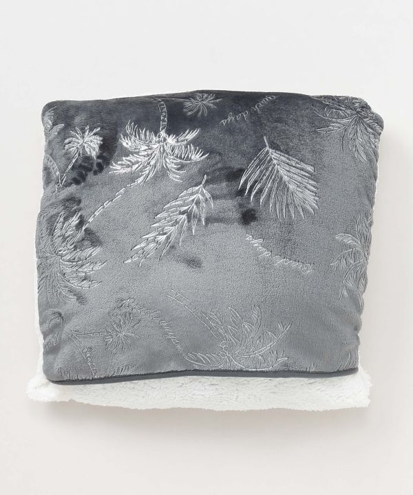 上品なヤシ柄が箔プリントされた大人な雰囲気のブランケットが登場。 生地は肉厚で暖かく、表は滑らかなフリース、裏はしっとりとしたボアで 仕上げられています。