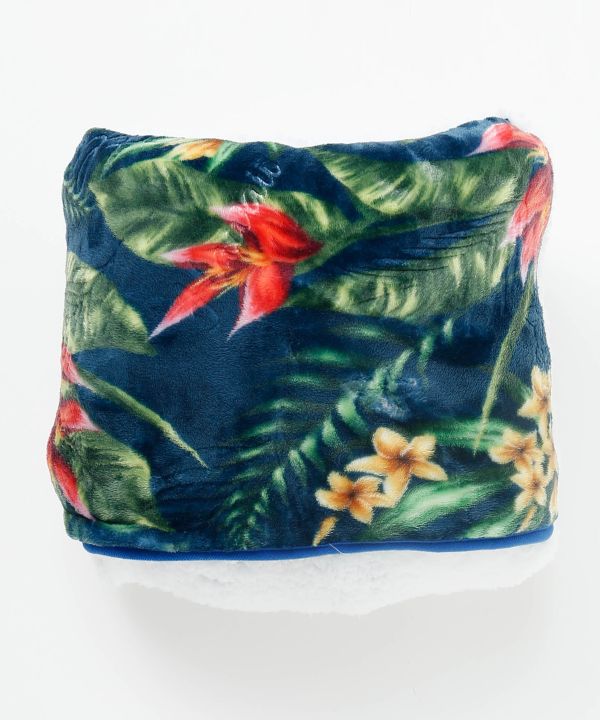 ハワイアンボタニカル柄に、型押しでAlohaロゴやパームリーフ柄が押されている上品な雰囲気のブランケット。Mサイズはひざ掛けや肩掛けとしてちょうど良いサイズ。パッカブル仕様になっています。鮮やかなボタニカル柄は日々のライフスタイルを素敵に演出してくれます。柔らかボアの身も心も温まるプレゼントとしても喜ばれます。