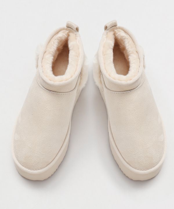 トレンドの浅型の厚底ムートンブーツ。見た目はしっかりしていながら、軽量で長時間歩いても疲れにくいです。内側はふわふわ素材で足元をしっかり包み込み、寒い季節も暖かく過ごせます。シンプルデザインで様々なコーディネートに合わせていただけます。