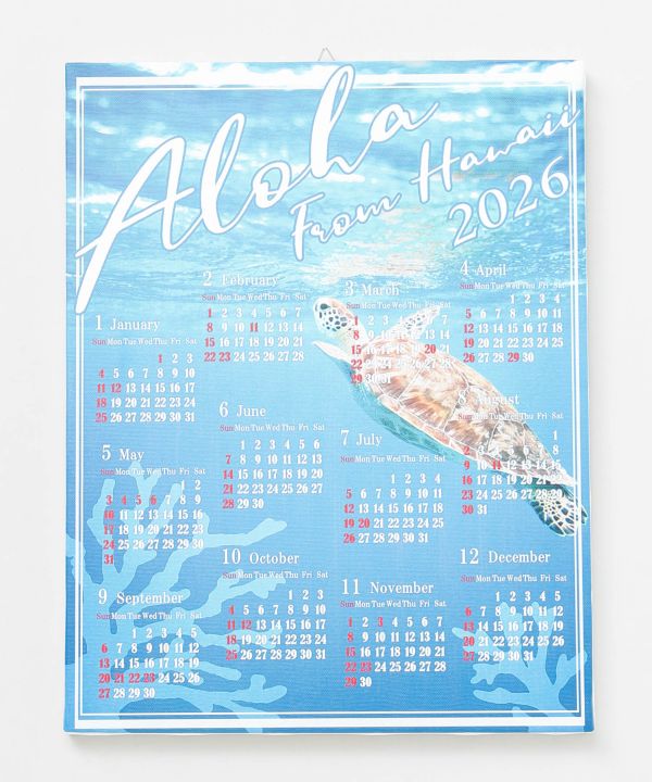 ハワイの景色を見ながら、素敵な一年を過ごせるハワイアンカレンダー。キャンバスに描かれているのでインテリアとして飾っても素敵です。