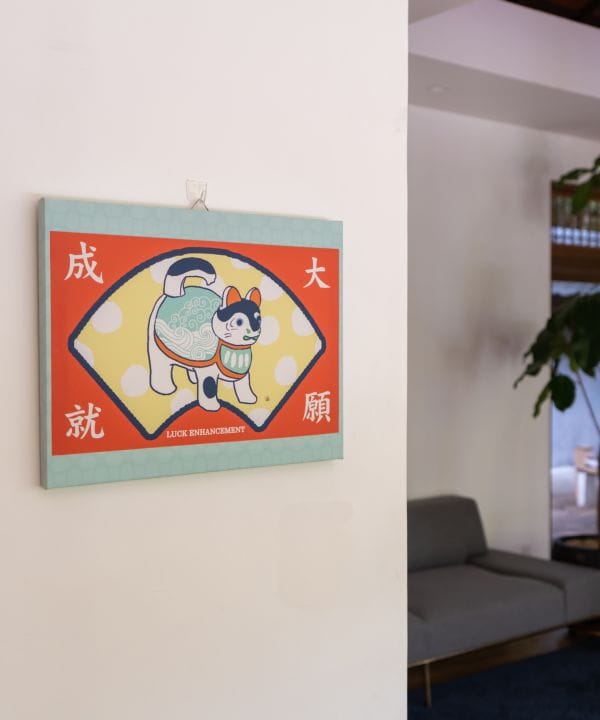 日本の昔ながらのマッチ箱のラベルをイメージしたアートボード。立てかけて飾るのはもちろん、壁掛け用のフックが付いているので、様々な場所で楽しめます。一枚でお部屋のアクセントに。