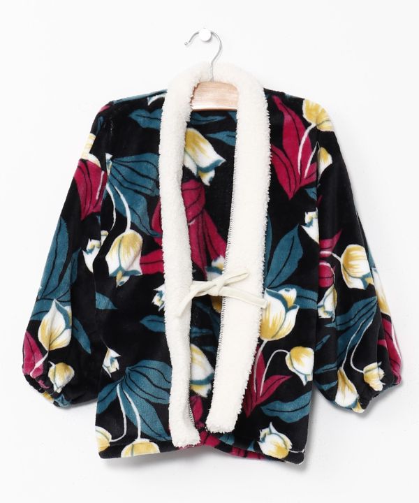 日本の花や浮世絵などのモチーフをデザインした、ブランケット素材の子供用半纏。ふわふわ素材で暖かく、しっかり防寒出来ます。ご家族でお揃いコーデもお楽しみいただけます。