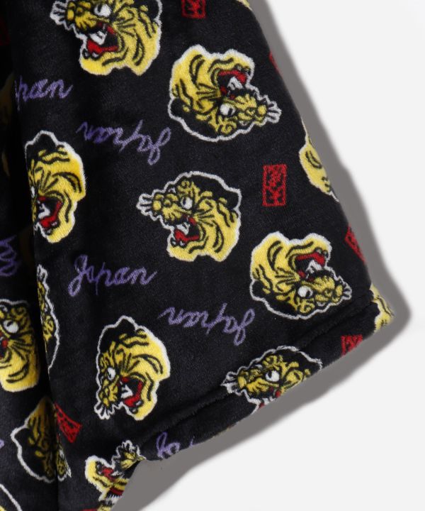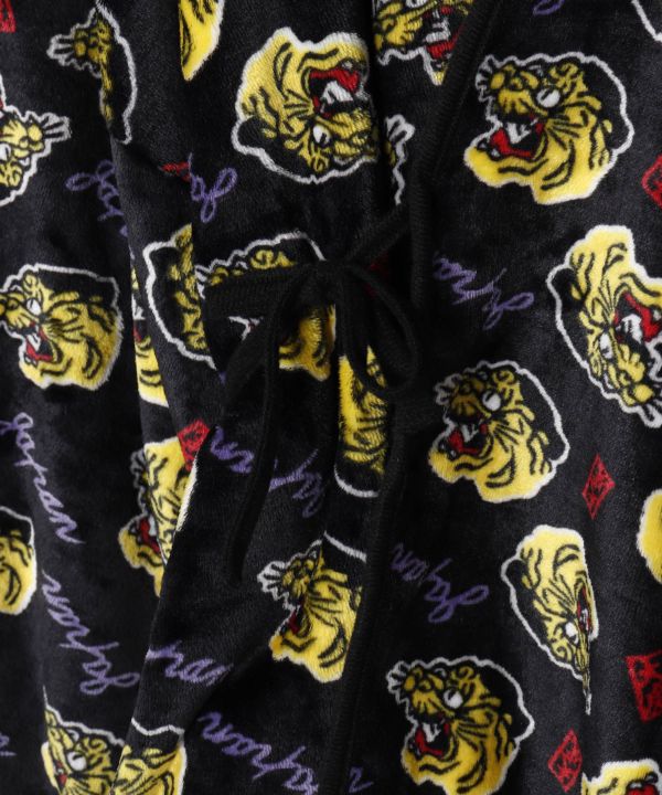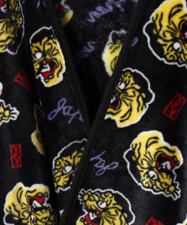 浮世絵から飛び出てきたような、大胆な虎、うさぎが目を惹く、暖かなブランケット素材の羽織。長い羽織タイプで足元までしっかり暖めてくれます。さっと羽織って前で結んだり、着物のようにしっかり合わせて左右で結べば、より暖かく着られます。