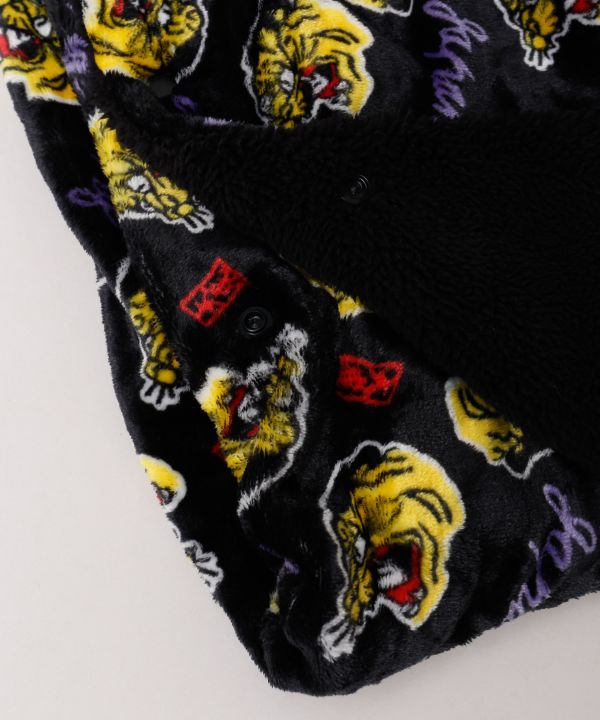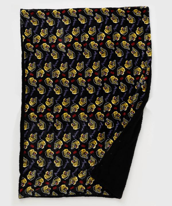 浮世絵から飛び出てきたような、大胆な虎、うさぎが目を惹くブランケット。表は滑らかな肌触り、裏はふんわりとしたボア素材。2枚合わせのため保温性抜群です。広げてひざ掛けに、ポケットにしまい込むと座布団としてお使いいただけます。