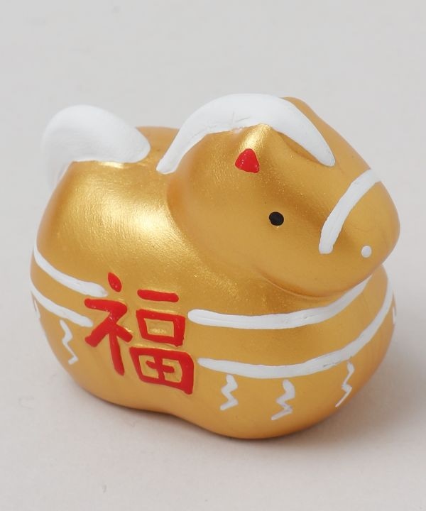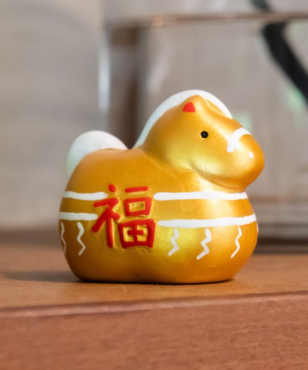 「午」モチーフの陶器の干支みくじ。縁起の良い白馬と御利益がありそうな金色の馬の二種類。中には「大吉」「中吉」「吉」「小吉」「末吉」の5種類からどれか一つが入っています。おみくじを楽しんだあとは干支飾りとして飾っていただけます。