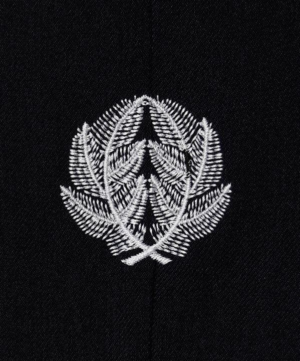 着物に倣(なら)った形の着物風羽織。衿と袖口に上品なジャカード生地を使用。背中にはそれぞれ、松・竹・梅の家紋の刺しゅうが入っています。同じシリーズの帯付きパンツやトップスと合わせることで、より着物のような着こなしに。ゆったりとしたサイズ感で、性別問わず着用いただけます。サイドポケット付き。