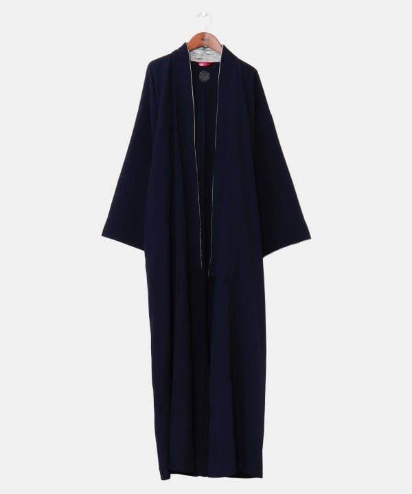 着物に倣(なら)った形の着物風羽織。衿と袖口に上品なジャカード生地を使用。背中にはそれぞれ、松・竹・梅の家紋の刺しゅうが入っています。同じシリーズの帯付きパンツやトップスと合わせることで、より着物のような着こなしに。ゆったりとしたサイズ感で、性別問わず着用いただけます。サイドポケット付き。