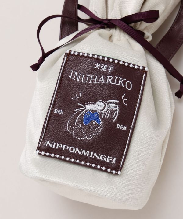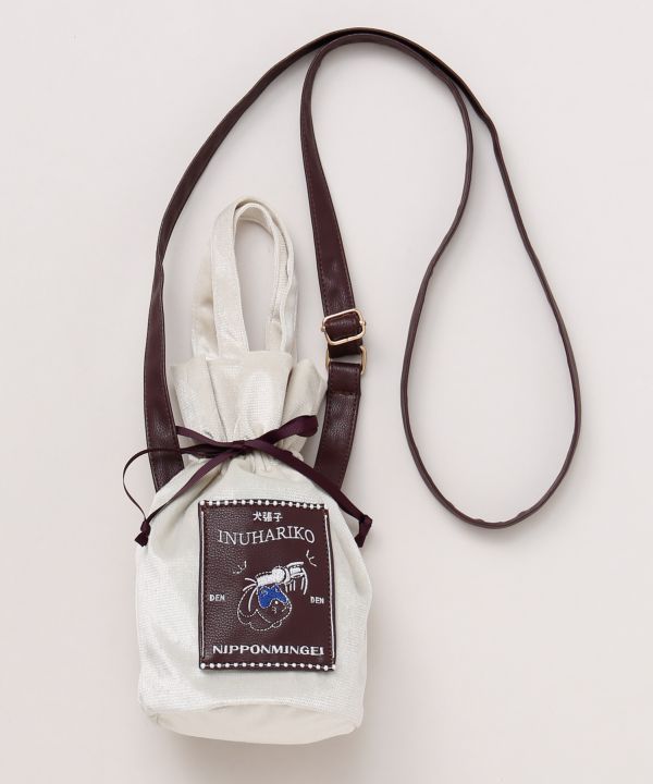 合皮に愛らしい表情の民芸たちを刺しゅうした巾着型のショルダーバッグ。ベロア素材とレトロなカラーで、様々な装いにも合わせやすく、ちょっとしたお出かけにもぴったり。ショルダー紐は長さ調節可能。カードが入るサイズの外ポケット1つ付き。