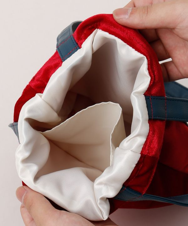 合皮に愛らしい表情の民芸たちを刺しゅうしたA4サイズのトートバッグ。ベロア素材とレトロなカラーで、様々な装いにも合わせやすく、ちょっとしたお出かけにもぴったり。内ポケット、外ポケット1つ付き。
