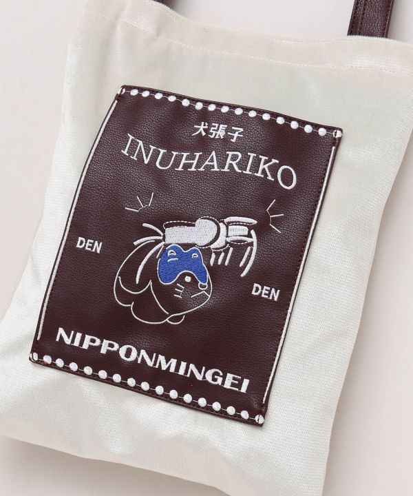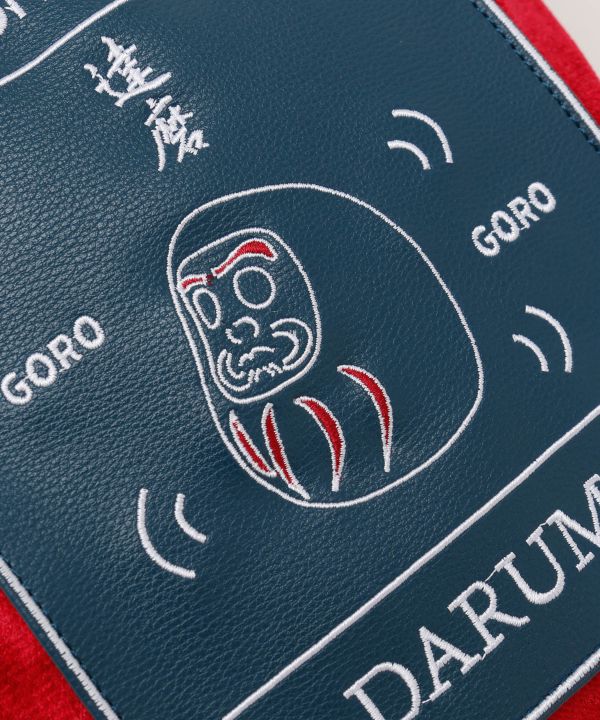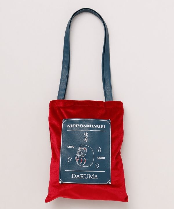 合皮に愛らしい表情の民芸たちを刺しゅうしたA4サイズのトートバッグ。ベロア素材とレトロなカラーで、様々な装いにも合わせやすく、ちょっとしたお出かけにもぴったり。内ポケット、外ポケット1つ付き。