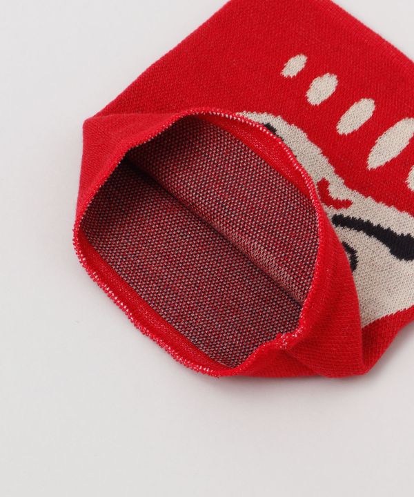 達磨が描かれたユニークなデザインの腹巻。ご家族とのお揃い使いにも。子供用のサイズで、ギフトにもおすすめです。しっかり防寒してくれる、見えてもお洒落な和モダン柄の厚手腹巻です。