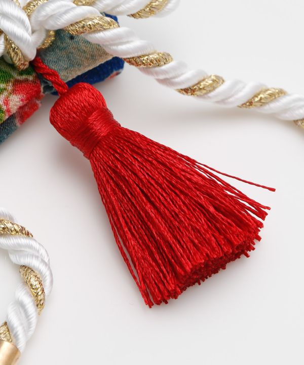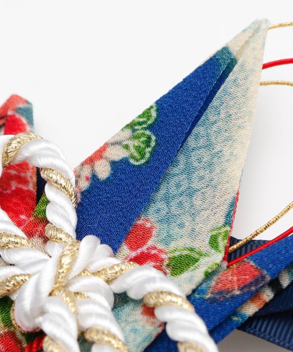 ちりめん素材の折鶴に水引や結び紐を組み合わせた髪飾り。ヘアクリップ仕様で、自由な位置に装着することが出来ます。特別な「ハレの日」におすすめのアクセサリー。