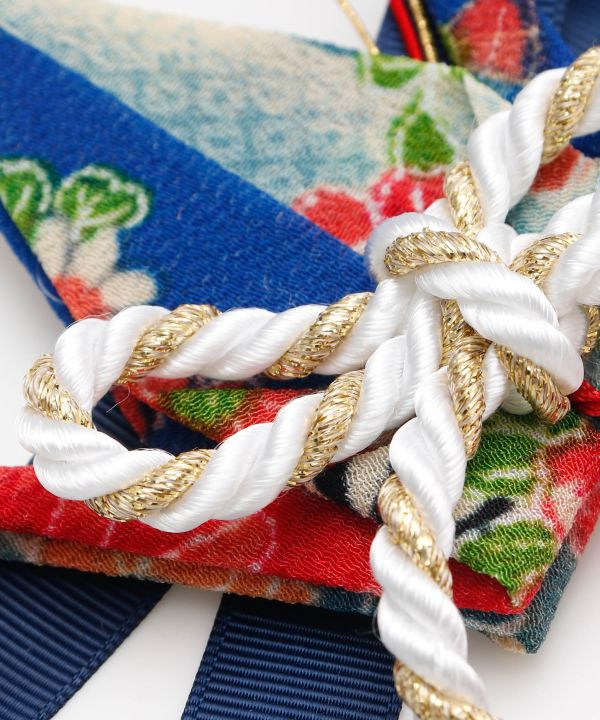 ちりめん素材の折鶴に水引や結び紐を組み合わせた髪飾り。ヘアクリップ仕様で、自由な位置に装着することが出来ます。特別な「ハレの日」におすすめのアクセサリー。