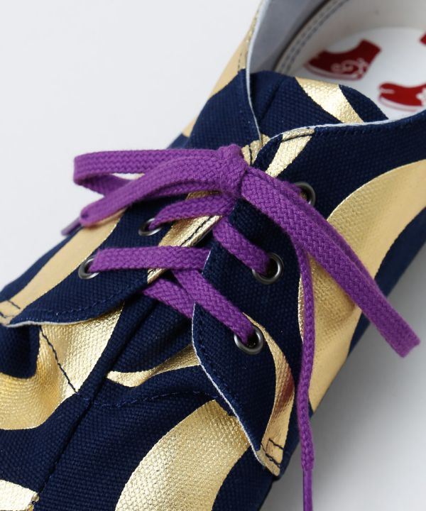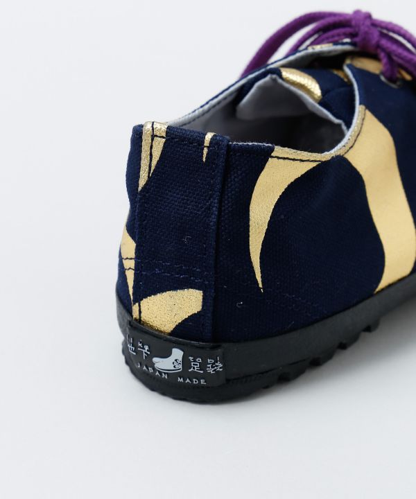 金色の月をイメージした、モダンな雰囲気の地下足袋。スニーカーのような紐付きデザイン。柔らかいソールが足にフィットし、とても履きやすく動きやすいです。