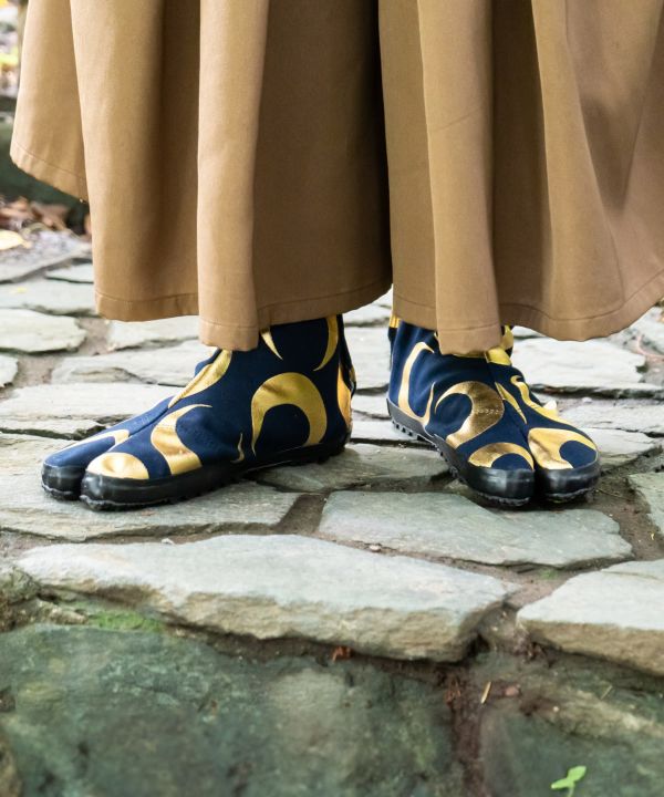金色の月をイメージした、モダンな雰囲気の地下足袋。柔らかいソールが足にフィットし、とても履きやすく動きやすいです。