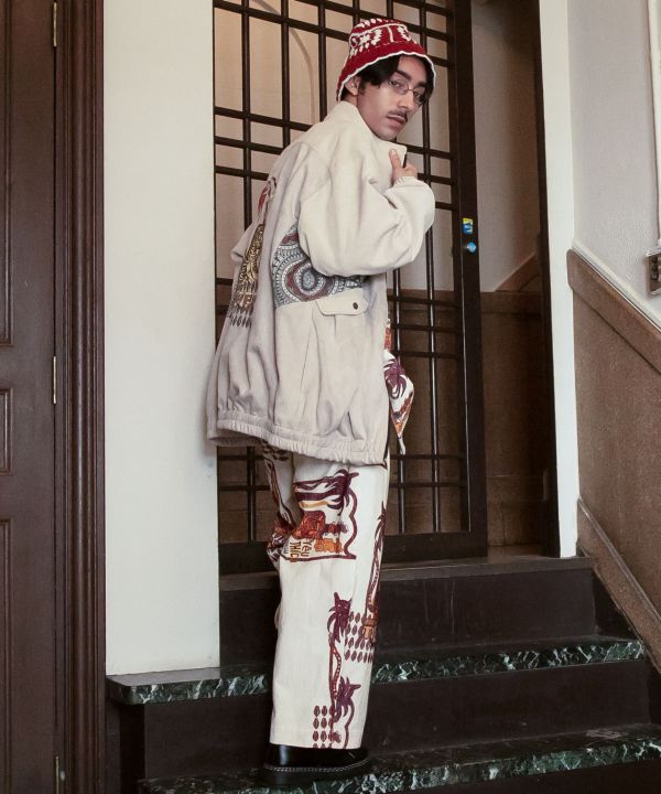 アクティブシーンでも大活躍間違いなしの、コーデュロイ・フェイクスエードメンズジャケット。ゆったりとしたシルエットで、体型やコーディネートを問わず着用可能。ゴブラン生地の大胆なパッチワークが唯一無二の個性を引き出してくれます。ボタン付き収納ポケットとサイドポケット付き。文明開化を題材に、海外と日本の文化を織り交ぜたレトロパッケージを大胆に刺しゅうしました。