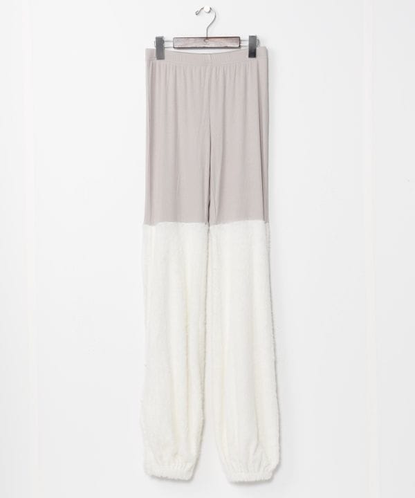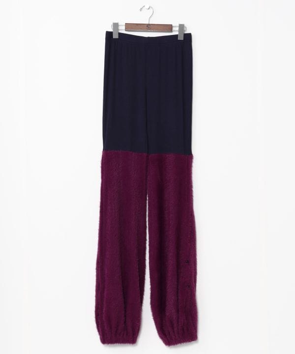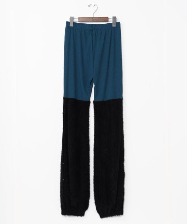 ストレッチ生地でゆったりとした着用感と、たっぷりとしたボリューム感が他にはないレギンス。カットソー生地と、ラクダの毛並みをイメージしたシャギー生地の組み合わせが特徴的。裾のゴムでトレンドのくしゅくしゅとしたシルエットに。レッグウォーマー見せも楽しめます。裾の飾りボタンにまでこだわった一枚です。