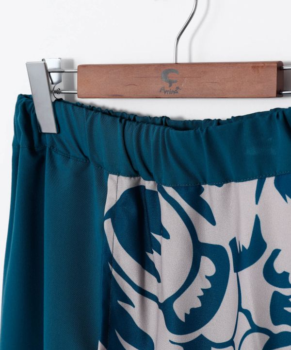 一枚でレイヤードスタイルが楽しめるワイドパンツ。落ち感のある生地はさらりとして着心地抜群。日本の国花である菊柄を単色で大胆にプリントしモダンなスタイルを演出。ぱっと華やぐ色展開で、コーディネイトの幅を広げれれるアイテムです。