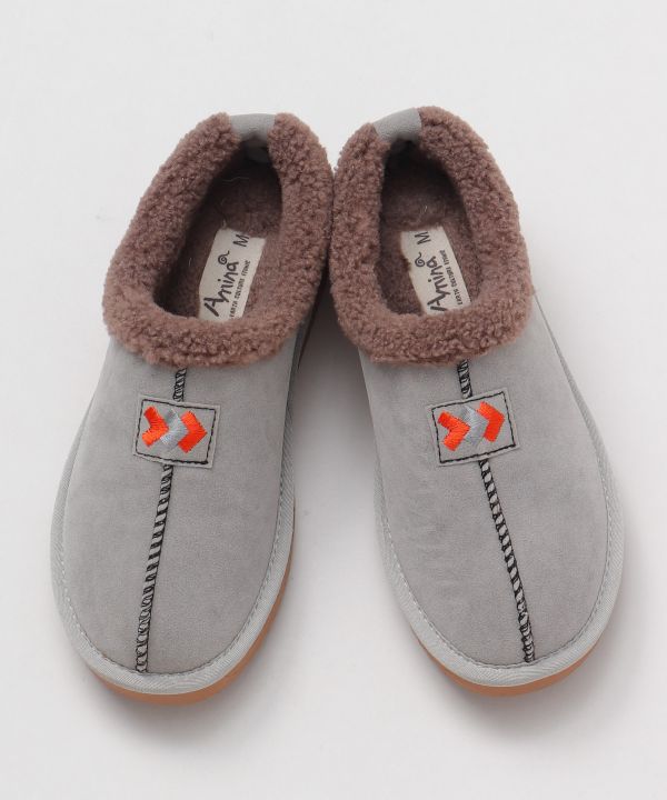 足先まで暖かいボアシューズ。ウズベキスタン遊牧民の世界を感じさせる色味とワンポイントの刺繍は伝統的なシンボルを使った足元のお守り。脱ぎ履きがしやすく、内側は全体がボア生地なので柔らかく暖かい。底が厚めなので歩きやすいのもポイント。