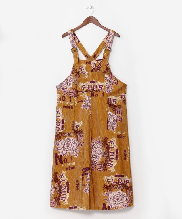 あたたかみのある地厚コーデュロイ生地のサロペットスカート。一味違うカジュアルコーディネートに大活躍。胸元にポケットあり。文明開化を題材に、海外と日本の文化を織り交ぜたレトロでオリエンタルなテキスタイルデザインが魅力の一枚。