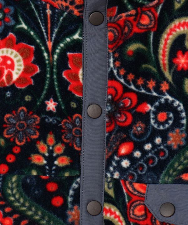 【Amina×grn】暖かく軽量な、普段使いに最適なやわらかフリースメンズジャケット。温度調整が難しい時期やアウトドアで、簡単に脱ぎ着できる機能的な一枚。シルクロードにある絨毯の産地「カーペットベルト」から柄の着想を得た、オリジナリティあふれる柄が魅力的。胸と両サイドにポケット付き。