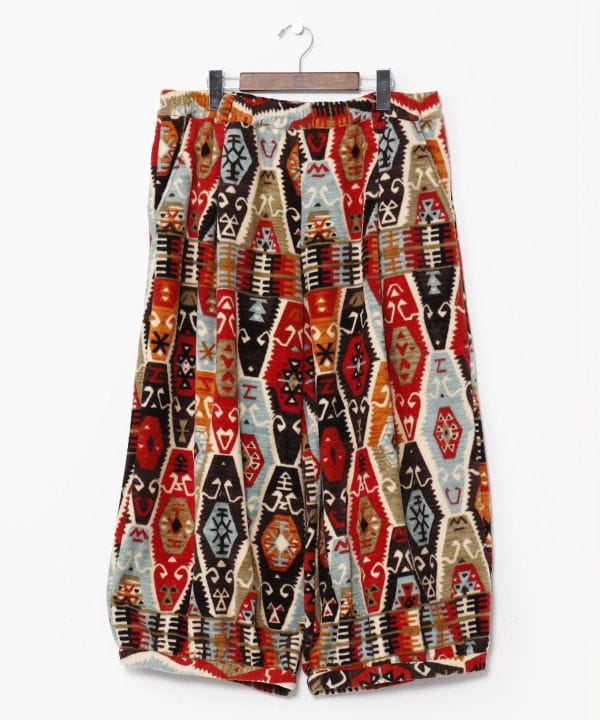 【Amina×grn】暖かく軽量な、普段使いに最適なやわらかフリースメンズパンツ。シルクロードにある絨毯の産地「カーペットベルト」から柄の着想を得た、オリジナリティあふれる柄が魅力的。両サイドにポケット付き。
