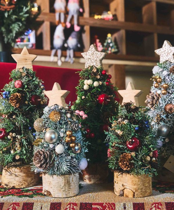 玄関やデスクなど、ちょっとしたスペースにもぴったりなクリスマスツリー。飾りが付いているので、置くだけで簡単にクリスマス気分が味わえます。