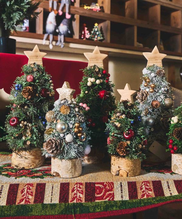 玄関やテーブルなど、小さなスペースにもぴったりなクリスマスツリー。飾りが付いているので、一つ置くだけでお部屋がたちまちクリスマスムードに。