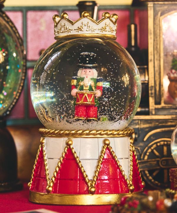 白いクラウンが輝く可愛らしい形のスノードーム。幻想的な光と共にクリスマスの音楽でお部屋をロマンティックに彩ります。存在感のあるスノードームはプレゼントにもおすすめです。