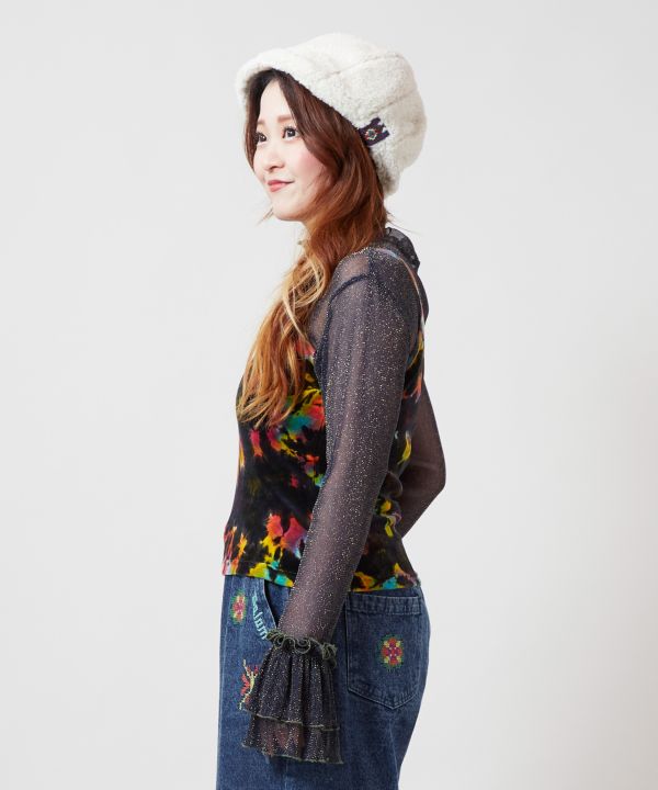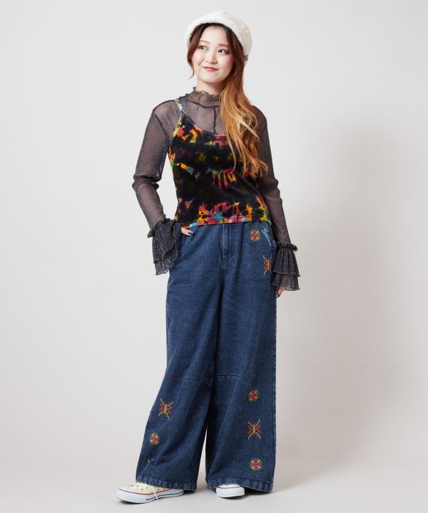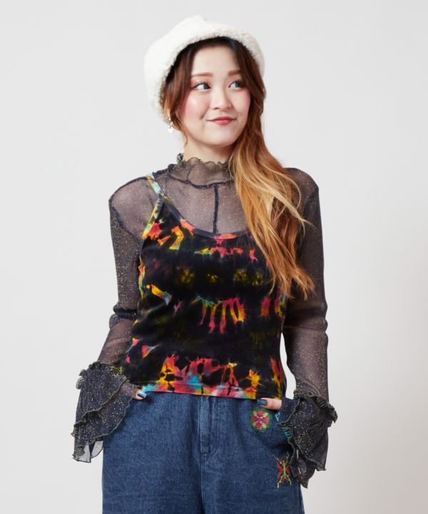 しっとりとした質感と伸縮性のあるベロア生地にタイダイ染めを施した、着心地のよい短丈のキャミソール。シャツの下にレイヤードしたりと、コーデに幅を持たせてくれる一枚。パンツと合わせたセットアップコーディネートもおすすめです。