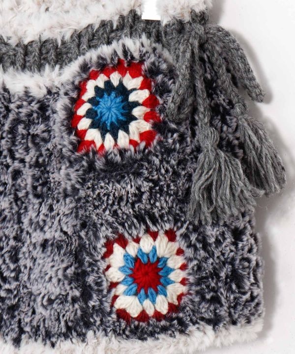 太めのファー糸が柔らかく暖かい、ネパールの職人さんによる手編みのスカート。カラフルなクロシェ編みとサイドのタッセル紐がポイント。パンツと合わせたレイヤードコーデにおすすめです。
